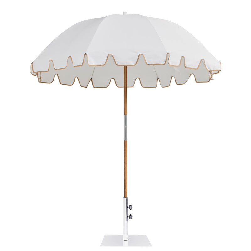 Elevate your exterior decor and functionality with Basil Bangs' Weekend Umbrella and 14kg White Square Base set. Ideal for enriching your outdoor haven—be it your garden, balcony, or poolside—with comfort and shade.