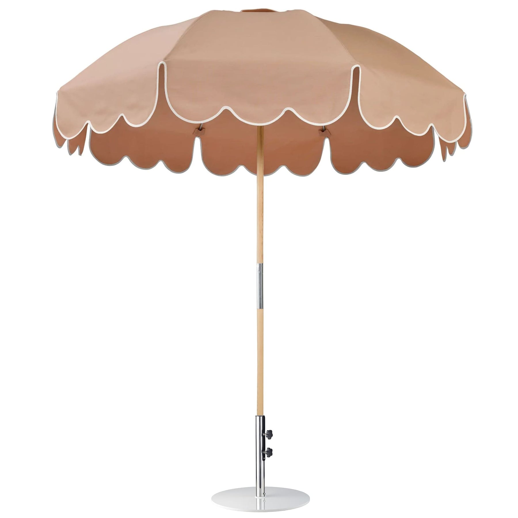 Discover refined outdoor living with the Jardin Umbrella with Soft Scallop + 25kg White Base Set. Inspired by timeless European silhouettes, the gently domed canopy is finished with a soft scalloped edge that adds subtle character without overpowering your space. With a generous 210 cm span, it creates an inviting shaded retreat for patios, gardens, balconies, and poolside settings across Canada.